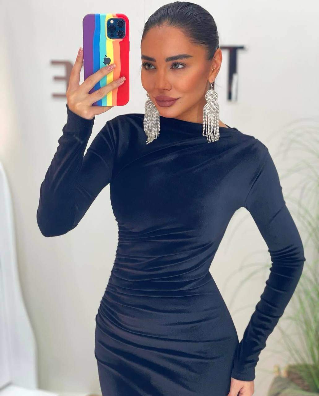 3660-1 BÜZGÜLÜ KADİFE ELBİSE SİYAH