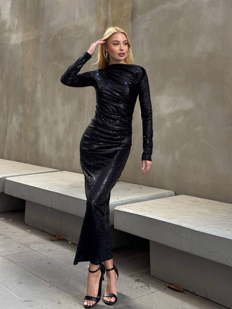 3660-1 BÜZGÜLÜ KADİFE ELBİSE YILAN DESEN