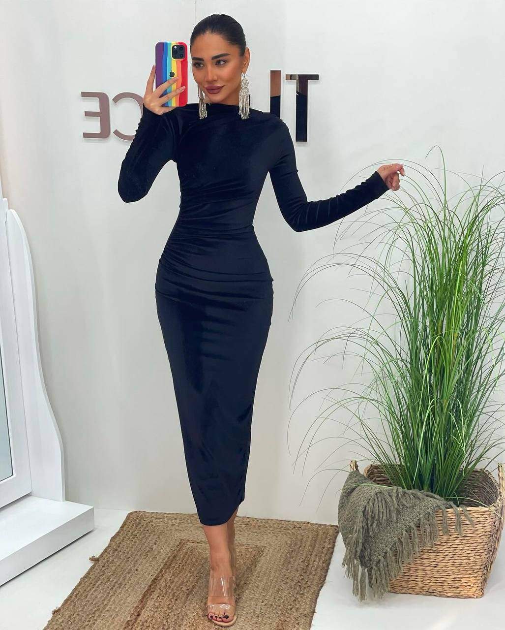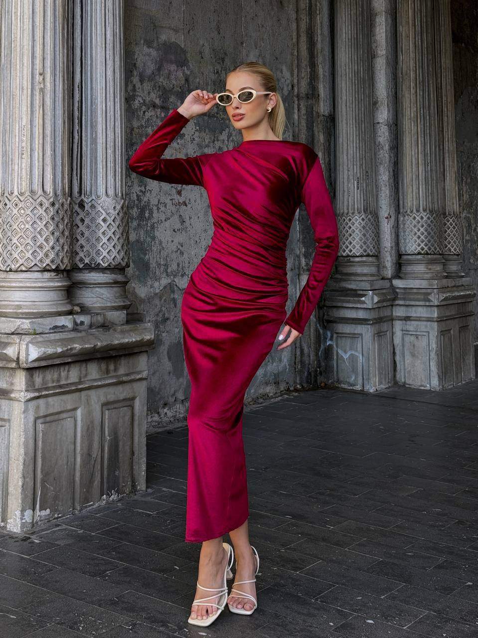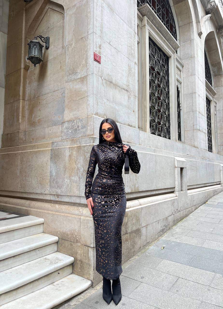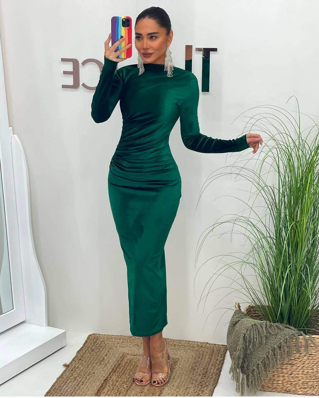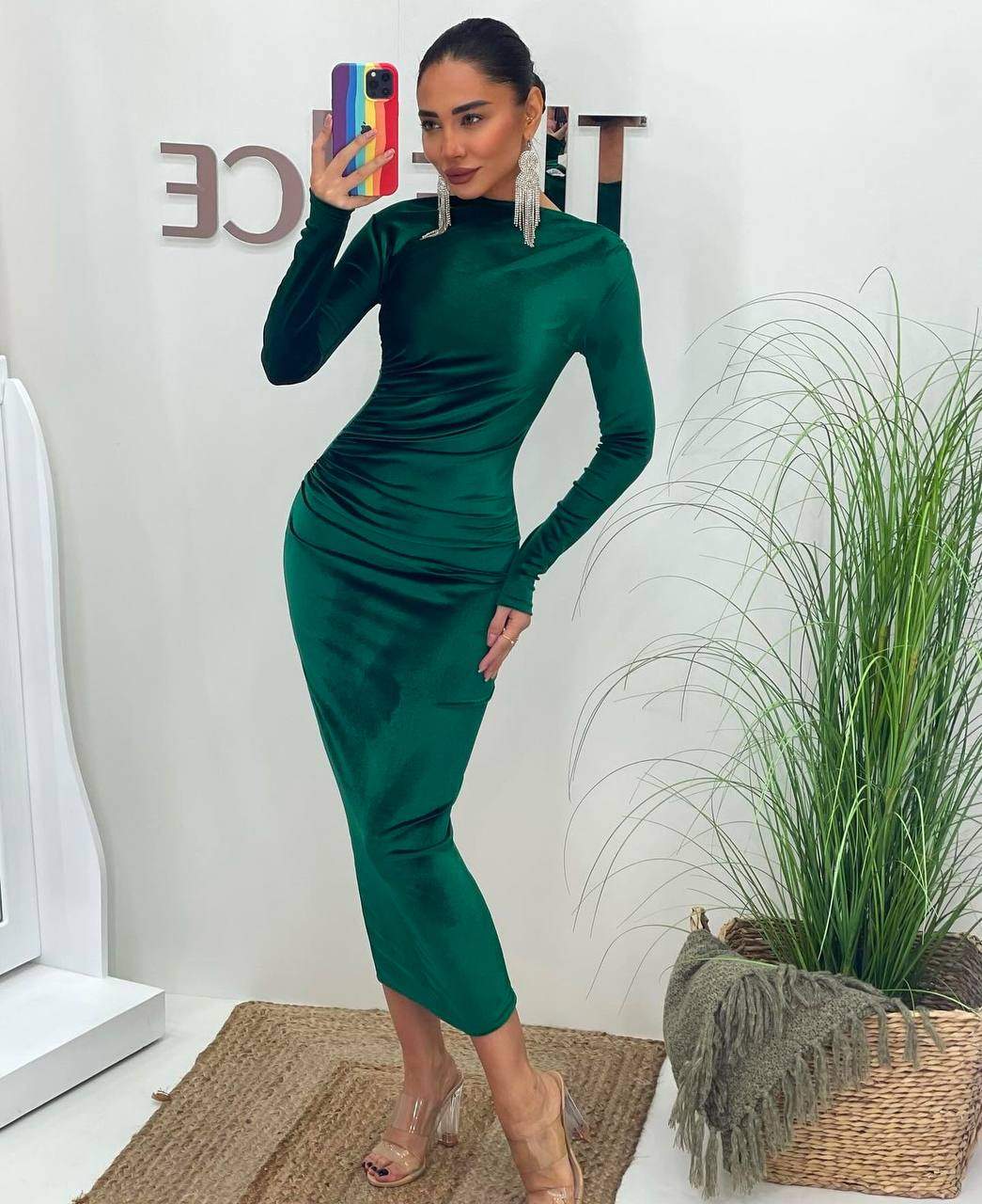 3660-1 BÜZGÜLÜ KADİFE ELBİSE ZÜMRÜT YEŞİLİ