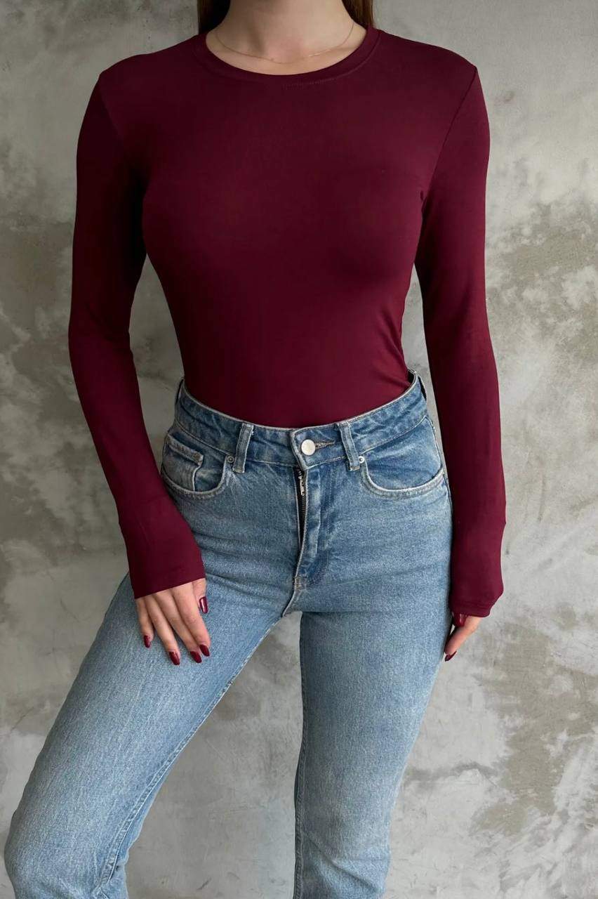 3725-1 KOL DETAYLI SCUBA CROP BORDO