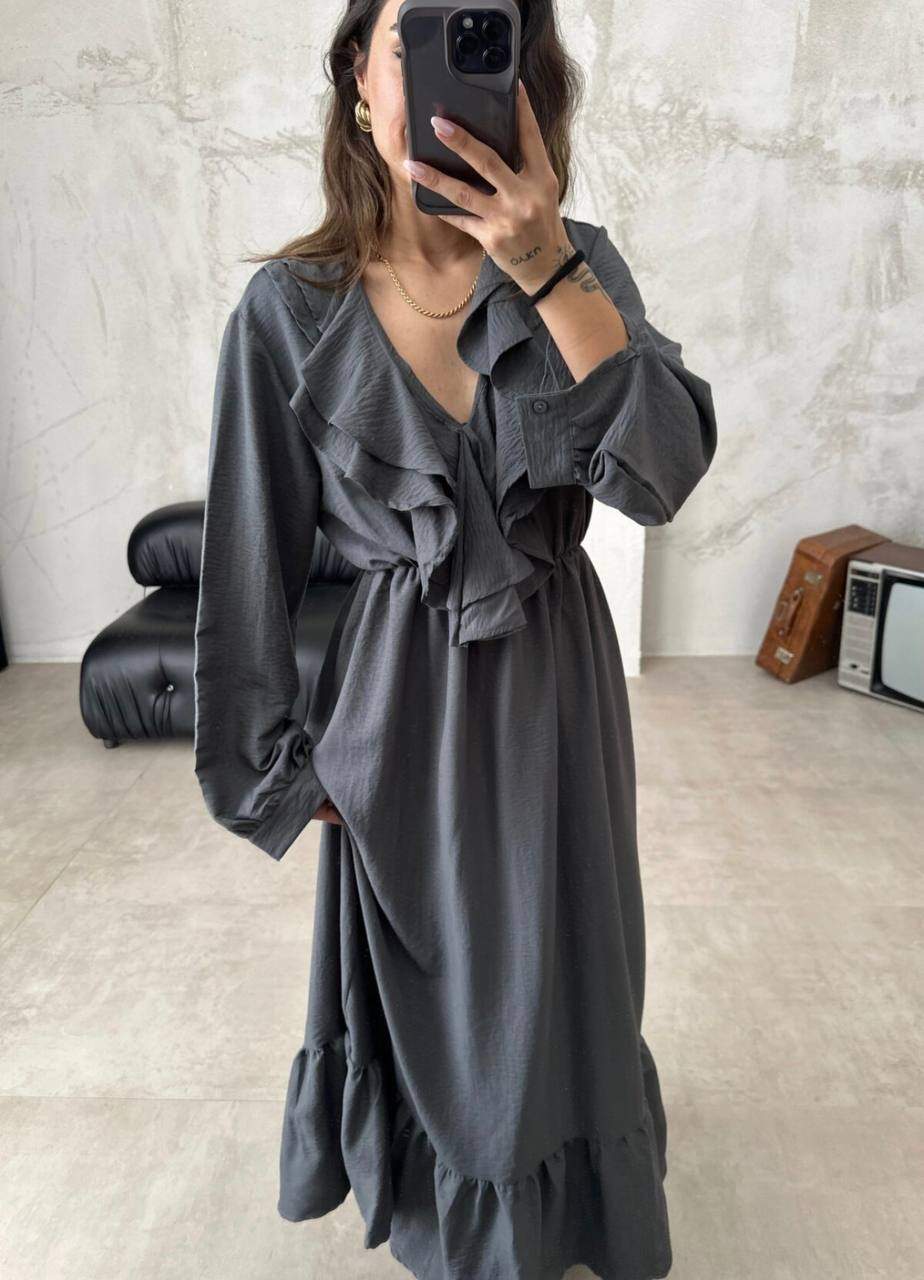 3812 ÖNÜ FIRFIRLI ELBİSE ACI KAHVE