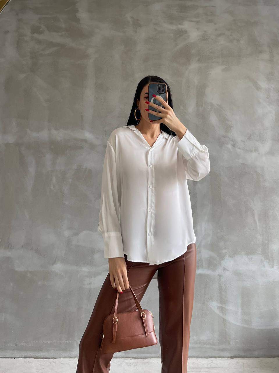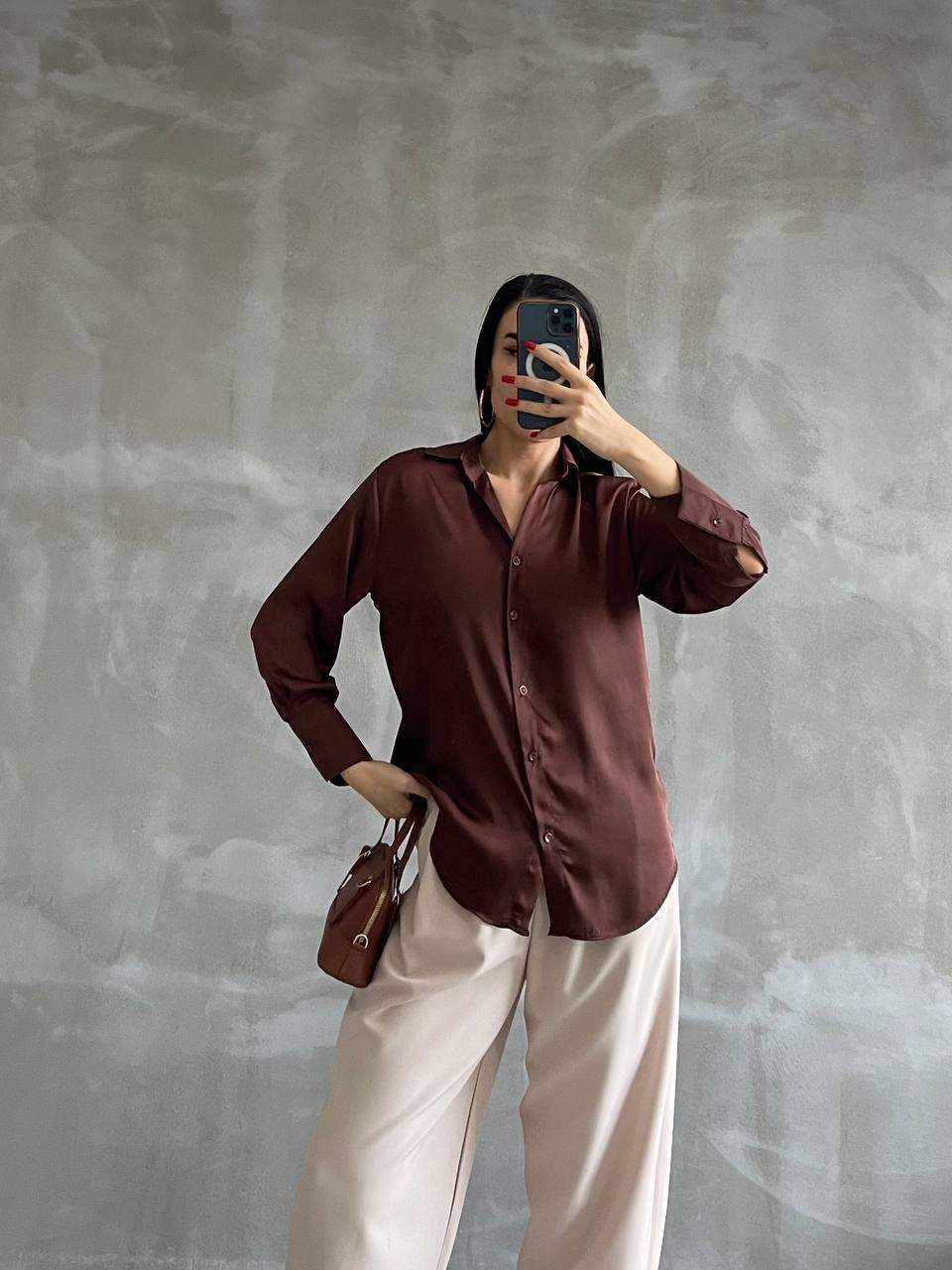 3836 ŞİFON SATEN GÖMLEK KAHVE