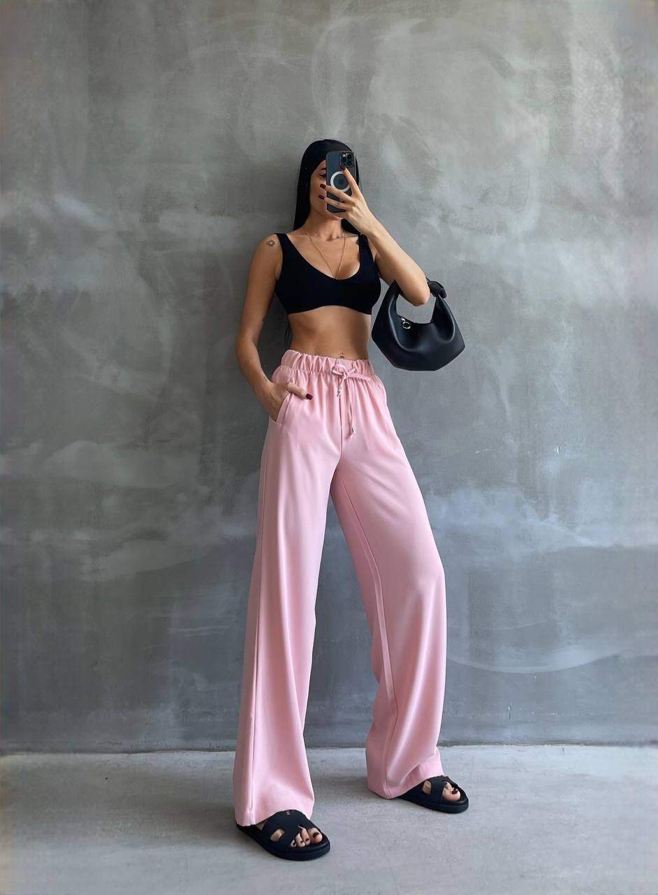 3921 ARKASI CEPLİ BELİ LASTİKLİ PANTOLON KIRIK BEYAZ