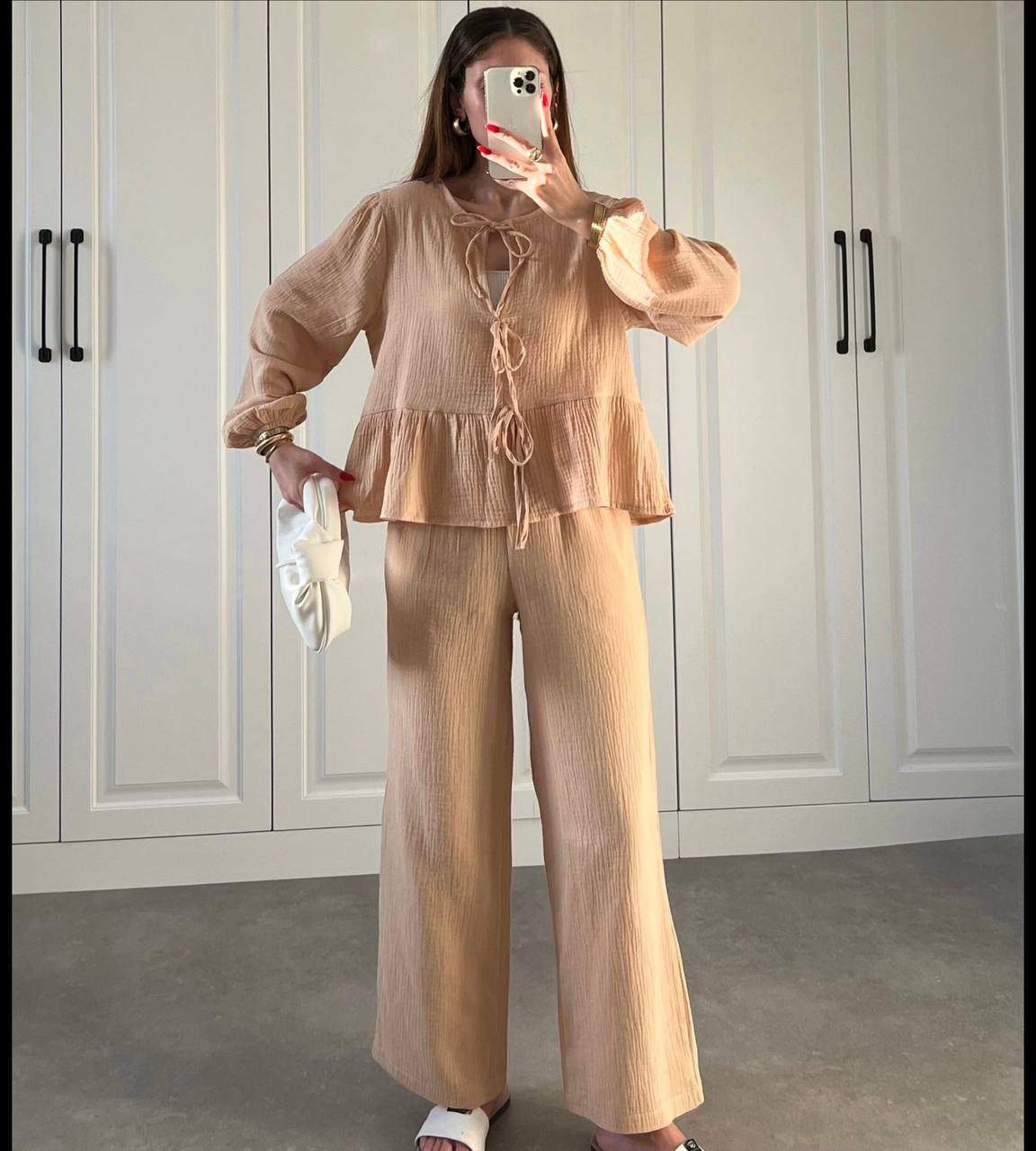 3941 BAĞLAMALI MÜSLİN TAKIM BEBE MAVİSİ