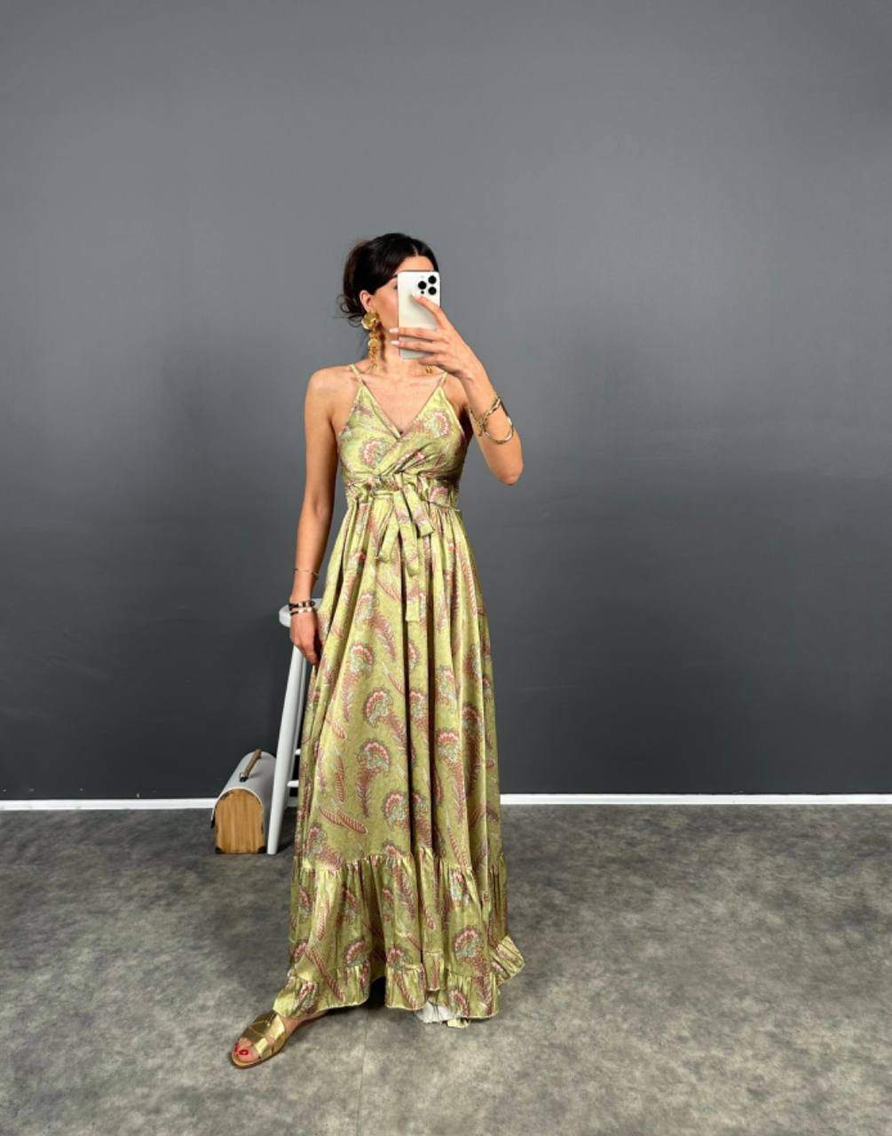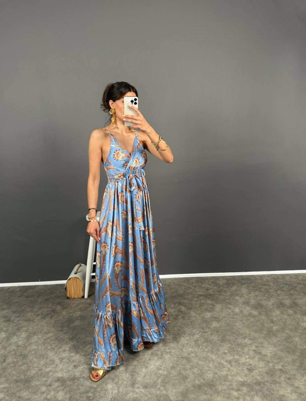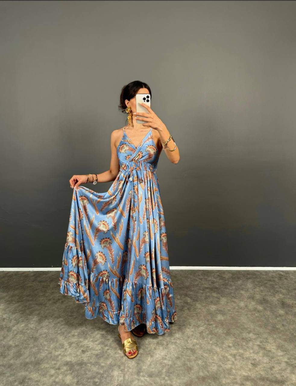 4003 ETEĞİ BOL SATEN ELBİSE BEBE MAVİSİ
