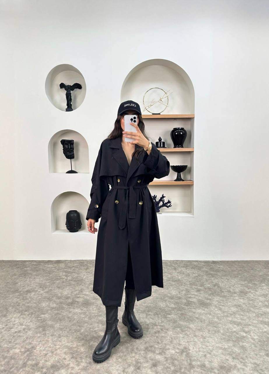 4026 DÖRT DÜĞMELİ TRENÇ KABAN LACİVERT