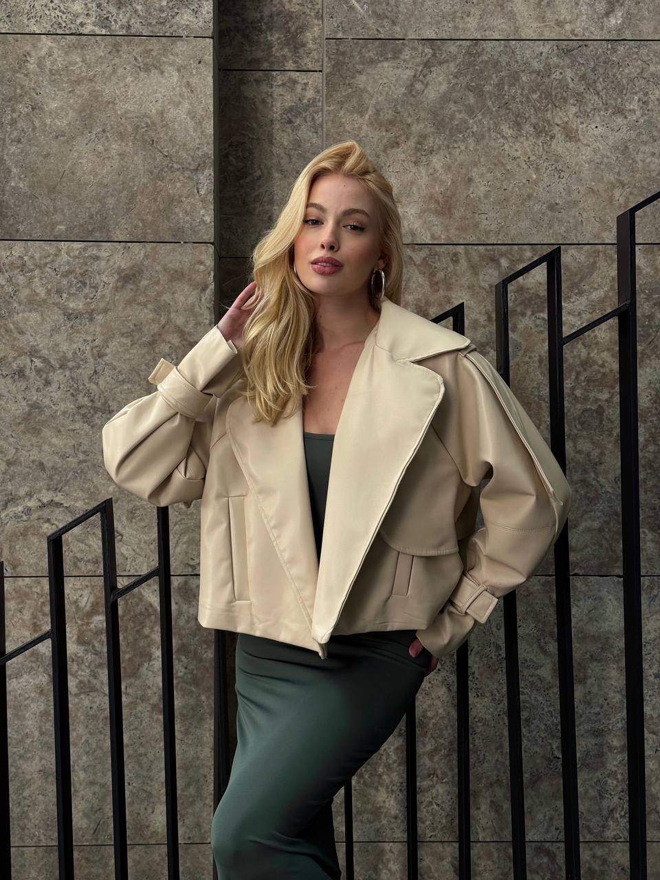 839 KEMERLİ CROP DERİ CEKET BEJ